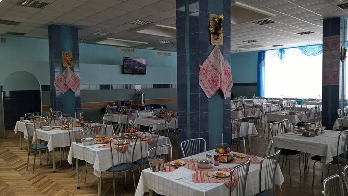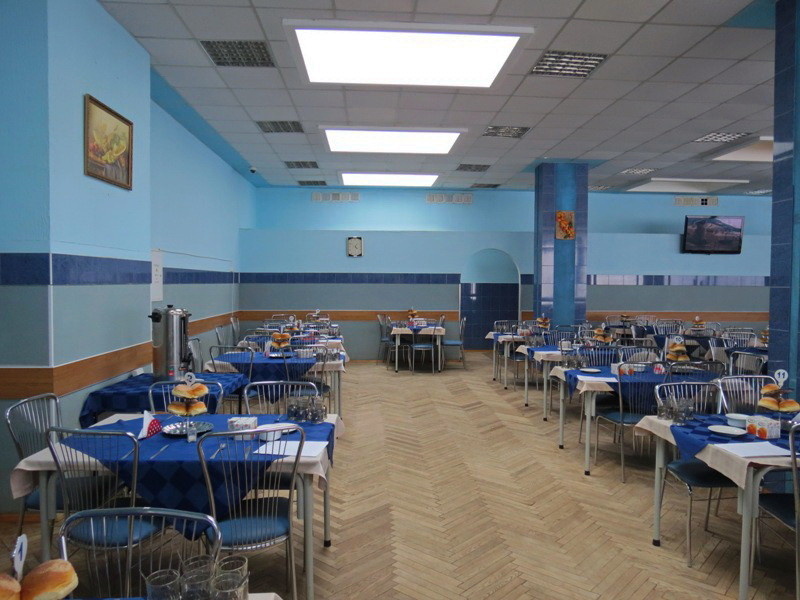 Столовая расположена в административном корпусе на 2 этаже, общий обеденный зал - 300 мест. Имеется банкетный зал на 10 мест.